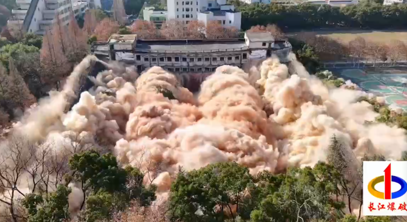 教科书级爆破!中南大学铁道校区创业楼拆除工程圆满成功——2025开年第一爆震撼上演!